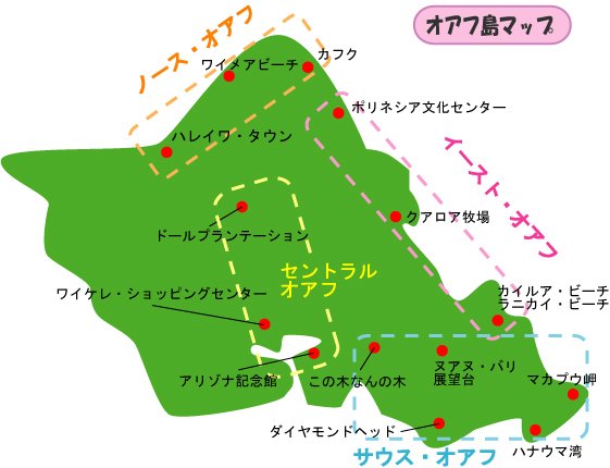 この他にもカピオラニ公園、ホノルル動物園、ワイキキ水族館、カハラ住宅街、カハラモール、石原邸、ハワイカイ、ココマリーナ、潮吹き穴、サンディービーチ、曙像、パンチボール、サンセットビーチ、バンザイビーチ、海カメビーチ、カメハメハ大王像、イオラニ宮殿、ハワイ州庁舎、ワシントンプレイス、カワイアハオ教会、セントアンドリュース教会、チャイナタウン、えひめ丸記念碑、ハワイウォーターアドベンチャーパーク、シーライフパーク、チルドレンディスカバリーセンターなどなどハワイには沢山の観光スポットがあります。詳しくはお問い合わせ下さい。 |